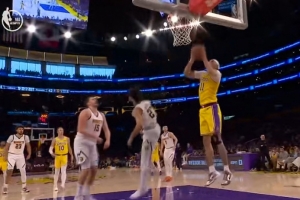 下一篇: 打小哈达威头上~詹姆斯失误后奋力回追 犯规破坏对手快攻